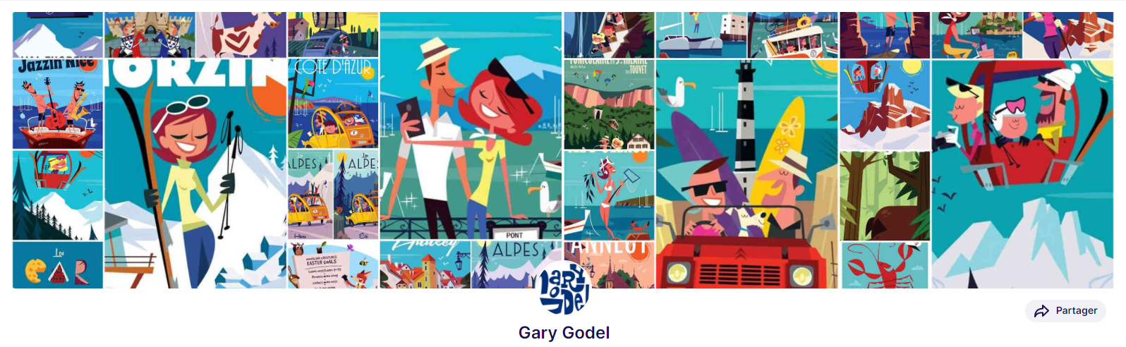 Gary Godel est un artiste britannique, qui réalise de nombreuses illustrations fantastiques de villes, en utilisant des formes plutôt brutes, et des couleurs très vives. Cet artiste a lui même représenter Chamonix au travers de différents tableaux sur la ville.
