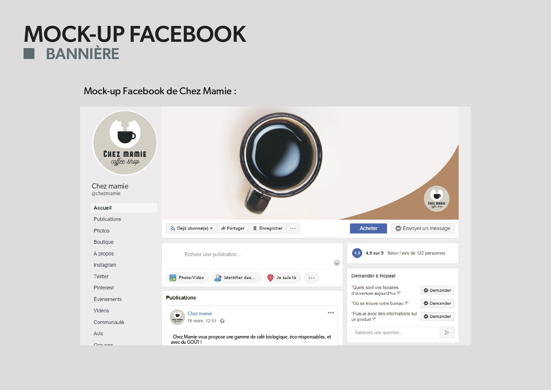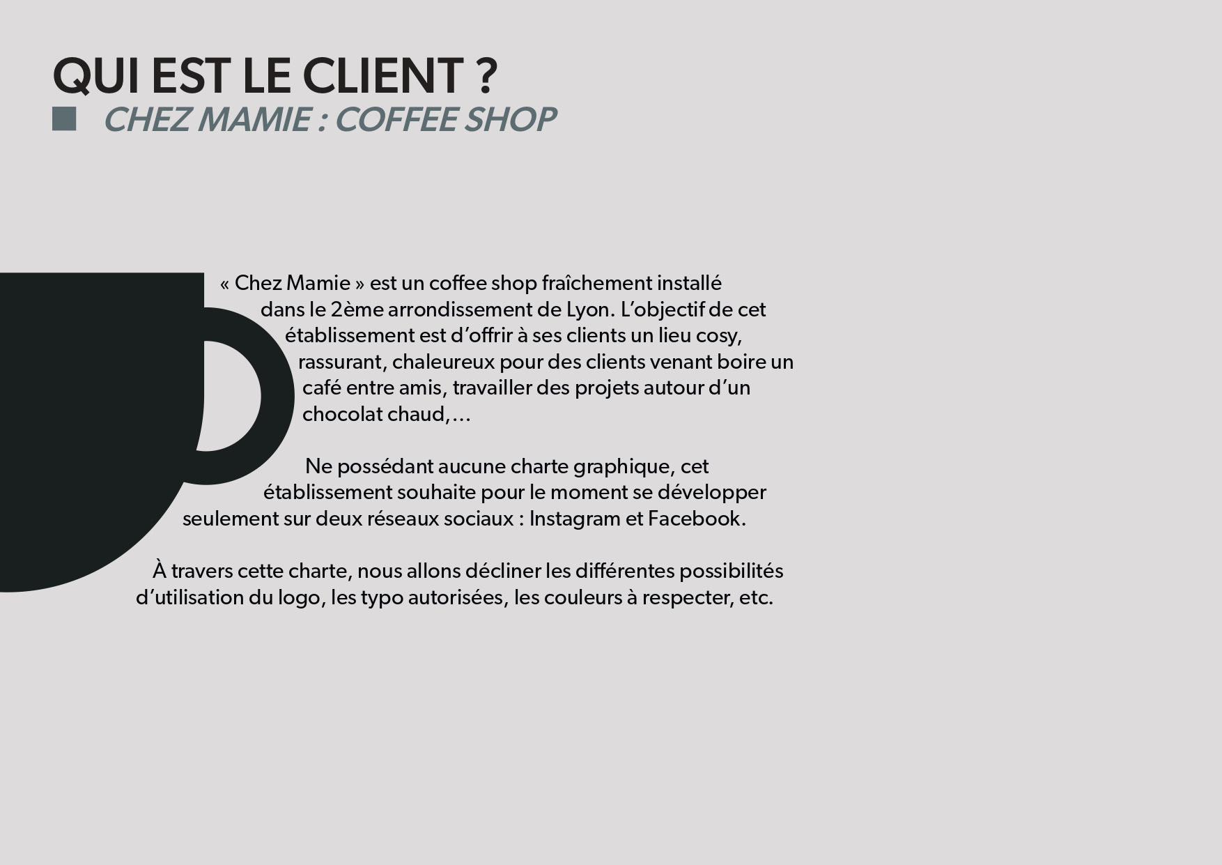 Pour cet exercice réalisé en cours, nous devions réaliser la charte graphique des réseaux sociaux d'un coffee shop fraîchement ouvert sur Lyon. Placements, couleurs, tailles, rien n'est laissé au hasard.